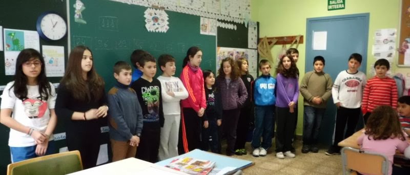 Gaur goizean, 5. A mailako neskak eta mutilak klasera etorri dira, Mª Jose andereñorekin.